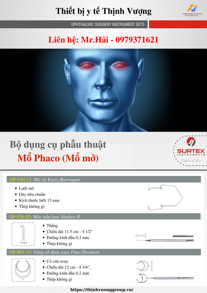 Hổ trợ 24/24 tất cả ngày trong tuầnBộ dụng phẫu thuật mổ Phaco (Mổ mở)