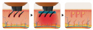 Đầu tiên đầu làm mát nguội dần bảo vệ lớp trên của da và tăng cường sự thoải mái trong điều trị. Sau đó, tia laser truyền vào da được hấp thụ bởi các nang lông và chuyển thành nhiệt. Điều này làm tổn thương các nang lông tiêu diệt sự phát triển của lông.